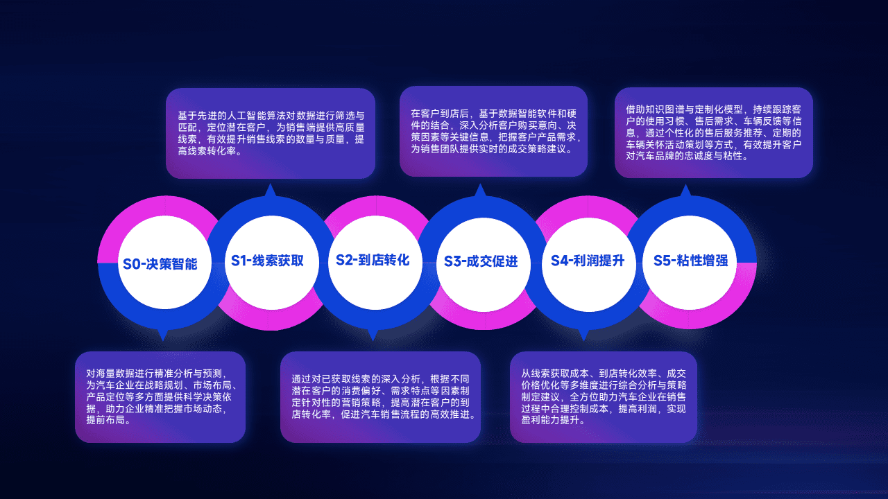 通过拓宽潜在客户来源、、、优化线索分配并提高到店转化率,,,以增强销售效率。。。同时,,,,利用线索数据不断优化分析模型,,,有效提升转化率,,,扩大营销影响力。。。